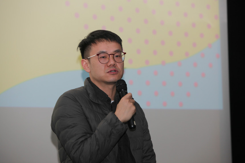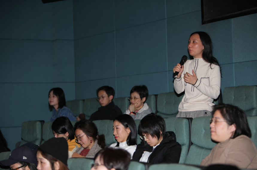 △《春江水暖》放映结束后,导演顾晓刚、剪辑指导刘新竹、摄影指导邓旭主持人水野进行交流。